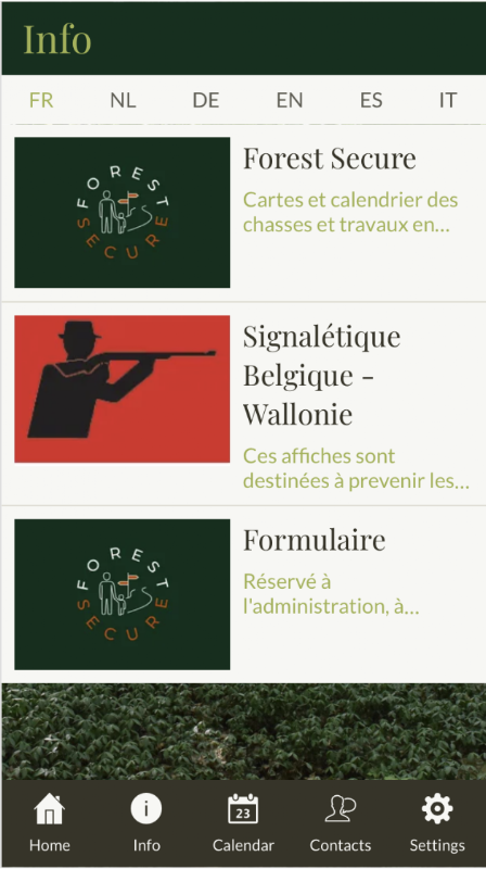 At a glance, you have access to the agenda of hunting and forestry work near your position. Classified by date and geolocation in an interactive map.