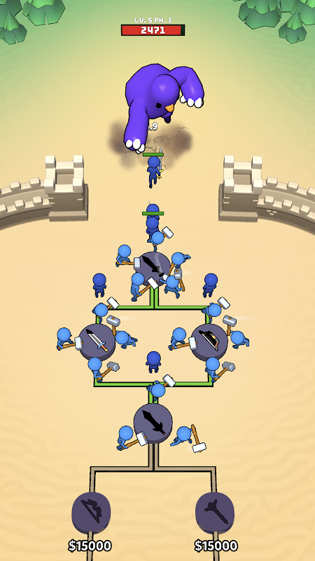 Increase your blacksmiths, make them stronger, forge the strongest swords, axes and bowes, fight against the giants and protect your town!