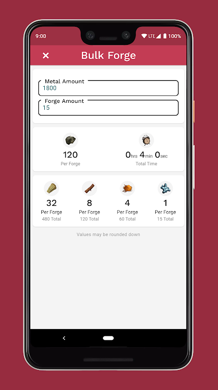 Forge Calc helps you smelt large amounts of metal efficiently.