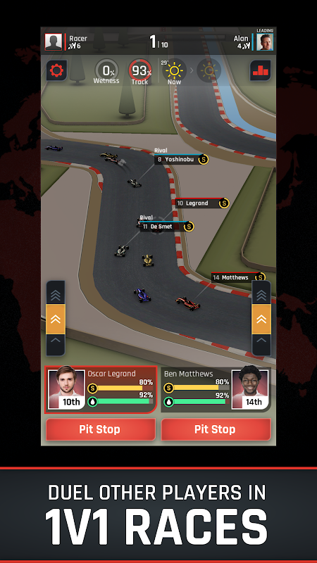 * Come up with the ideal pit stop strategy and react to weather changes, accidents and safety car periods