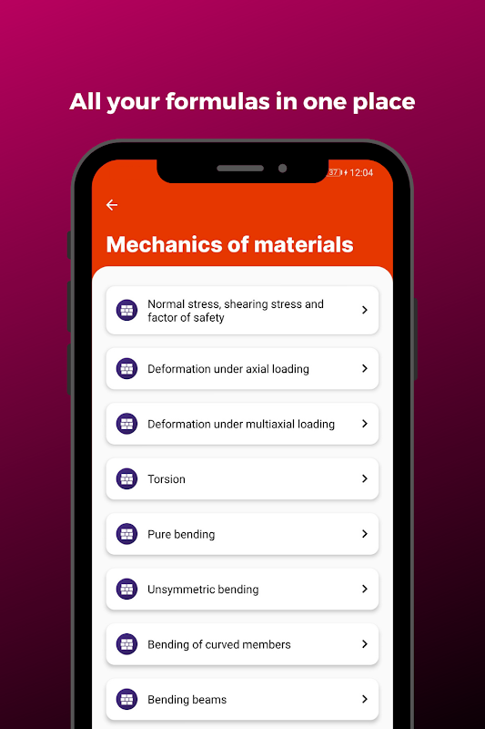 Formulia Civil has a wide collection of formulas for the fundamental subjects in civil engineering, as well as basic sciences such as mathematics, physics and general chemistry. Among the subjects are: