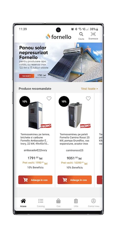 With the Fornello application, you can easily place orders from over 10,000 products grouped into 10 main categories, easily identifying sanitary, thermal, solar, climatic products and their benefits. With the help of the application you will be constantly up to date with the special offers and news of Fornello, you will identify the nearest Fornello store and its partners.