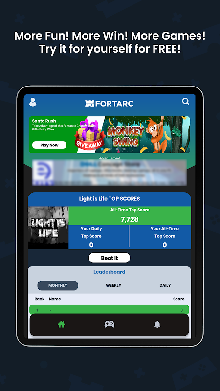 You don't need specific hardware or an invitation to play FortArc games; the screens and controllers you already have are enough. Play on compatible laptops, desktops, phones, and tablets. It's up to you.