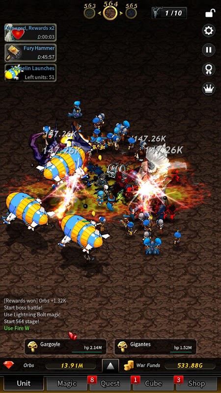 2. You can get War Funds and Orbs when you beat monsters. With this rewards, you may upgrade your Tap Hammer and units, or you may get new units.