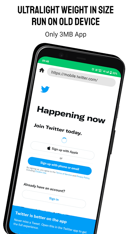 ForX Browser is light weight app. It can run on any device (less than 2 mb).