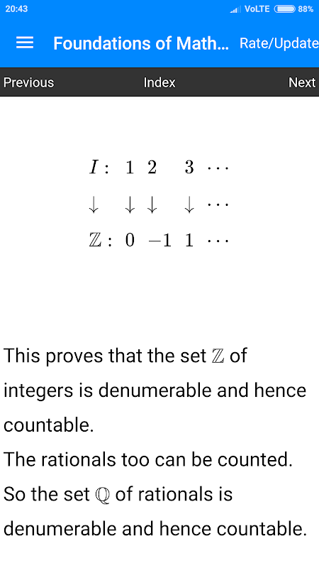 This app gives a concise introduction to Foundations of Modern Mathematics. The emphasis is on rigorous treatment of definitions, arguments, proofs etc. The topics covered are
