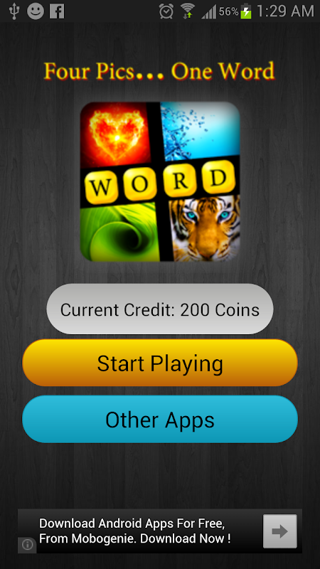The game contains of multiple levels, in each level, 4 pics are shown and the user should guess what is the common word between all 4 pics.
