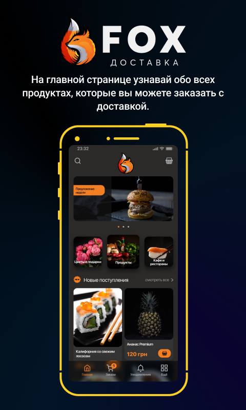 Application for the delivery of food from cafes and restaurants, groceries, flowers and gifts