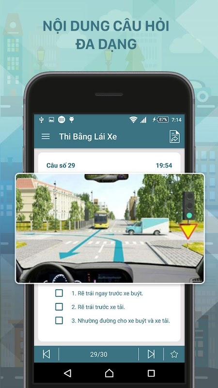 - Sử dụng bộ 420 câu hỏi dùng cho sát hạch cấp GPLX hạng B1 (không bao gồm 30 câu về nghiệp vụ vận tải).