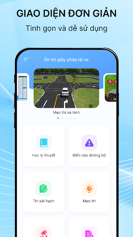 Cette application fournit une série de documents et de fonctionnalités utiles, aidant les utilisateurs à se préparer efficacement à l'examen du permis de conduire (GPLX) :