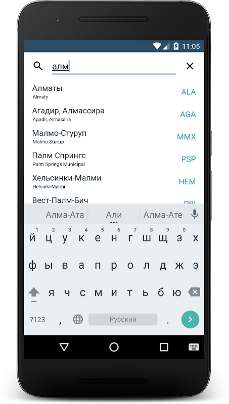 Une interface intuitive et simple, sans surcharge d’informations inutiles, vous permet de trouver rapidement les billets dont vous avez besoin. Pour faciliter le travail avec les résultats de la recherche de billets d'avion et de billets de train, des filtres de résultats sont fournis. Un tableau de prix pratique et compréhensible vous permettra de trouver les offres les plus avantageuses dans une plage de sept jours. Lorsque vous sélectionnez des offres parmi les résultats de la recherche de billets de train, vous pouvez vous familiariser avec l’itinéraire du train sélectionné, y compris l’heure d’arrivée et de départ d’une gare à l’autre.