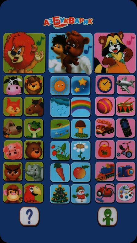Нажимай на иконки, слушай название и звук, запоминай.