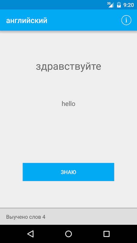 Sur l'écran vous voyez un mot en anglais et en essayant de se rappeler sa traduction.