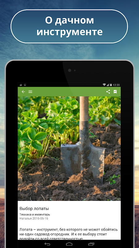 L'application "Antonov Garden" contient des matériaux sur la plantation, la culture et l'entretien des fleurs, des légumes, des fruits et des baies et des plantes ornementales. Vous trouverez des articles, des photos et des vidéos sur la façon de planter et de cultiver des concombres, des tomates et des poivrons en serre ou en extérieur. Seuls nous avons des conseils d'experts sur les problèmes les plus urgents du jardin et du potager:
