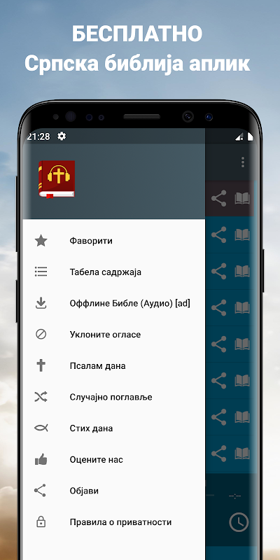 Bible audio dans l'application serbe. Livre audio hors ligne en mode application biblique.