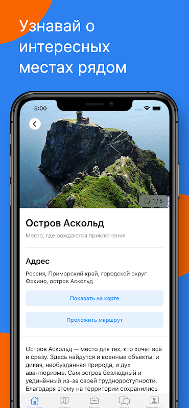 Ou vous pouvez partir indépendamment en voyage en utilisant la carte des attractions du territoire de Primorsky, qui se trouve dans l'application. Dans celui-ci, vous pouvez marquer les objets les plus intéressants pour vous-même et tracer un itinéraire vers eux.