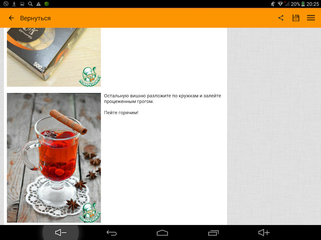 Povarёnok.ru heureux de vous aider à compléter le plat préféré de délicieuse boisson non alcoolisée dans la soirée ou déguster un verre de milk-shake utile - dans cette application, vous vous attendez à une riche collection de recettes pour les meilleures boissons non alcoolisées!
