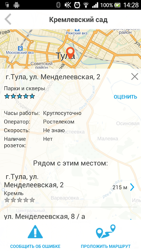 Регулярно обновляемая база данных Тулы и Тульской области. Автоматическое определение точек доступа рядом с тобой. Поиск по адресу и объекту. Полная информация о точке, включая пароль для доступа, график работы объекта, а также скорость доступа.