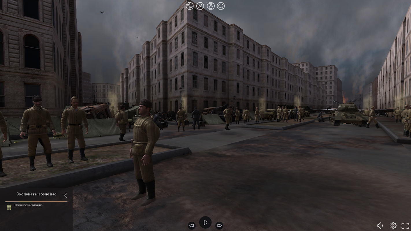 В рамках исторической реконструкции реализовано удобное интуитивно понятное управление с всевозможными подсказками. Чтобы каждый посетитель чувствовал себя комфортно в виртуальной среде.