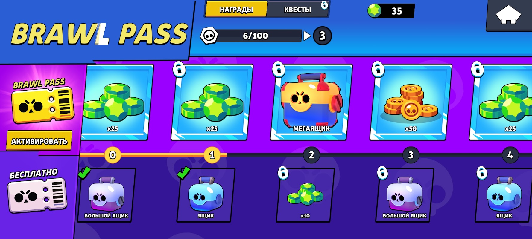 В симуляторе присутствует 3 бокса, при открытии которых вы получаете возможность выпадения новых героев, монет, кристаллов и тд. В игре также присутствует Brawl Pass, Путь к славе.