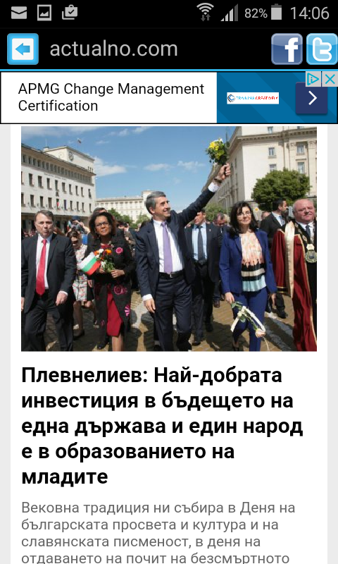 Чрез него можете да видите медународни новини, спортни новини, прогноза за времето. Споделете ги във Facebook или Twitter