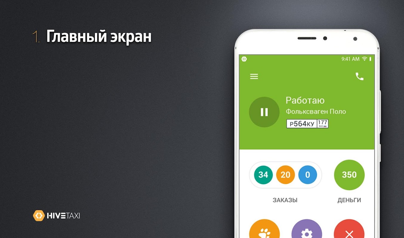 Инструкция для водителя: http://doc.hivetaxi.ru/docs/hivetaxi_driver_android.pdf