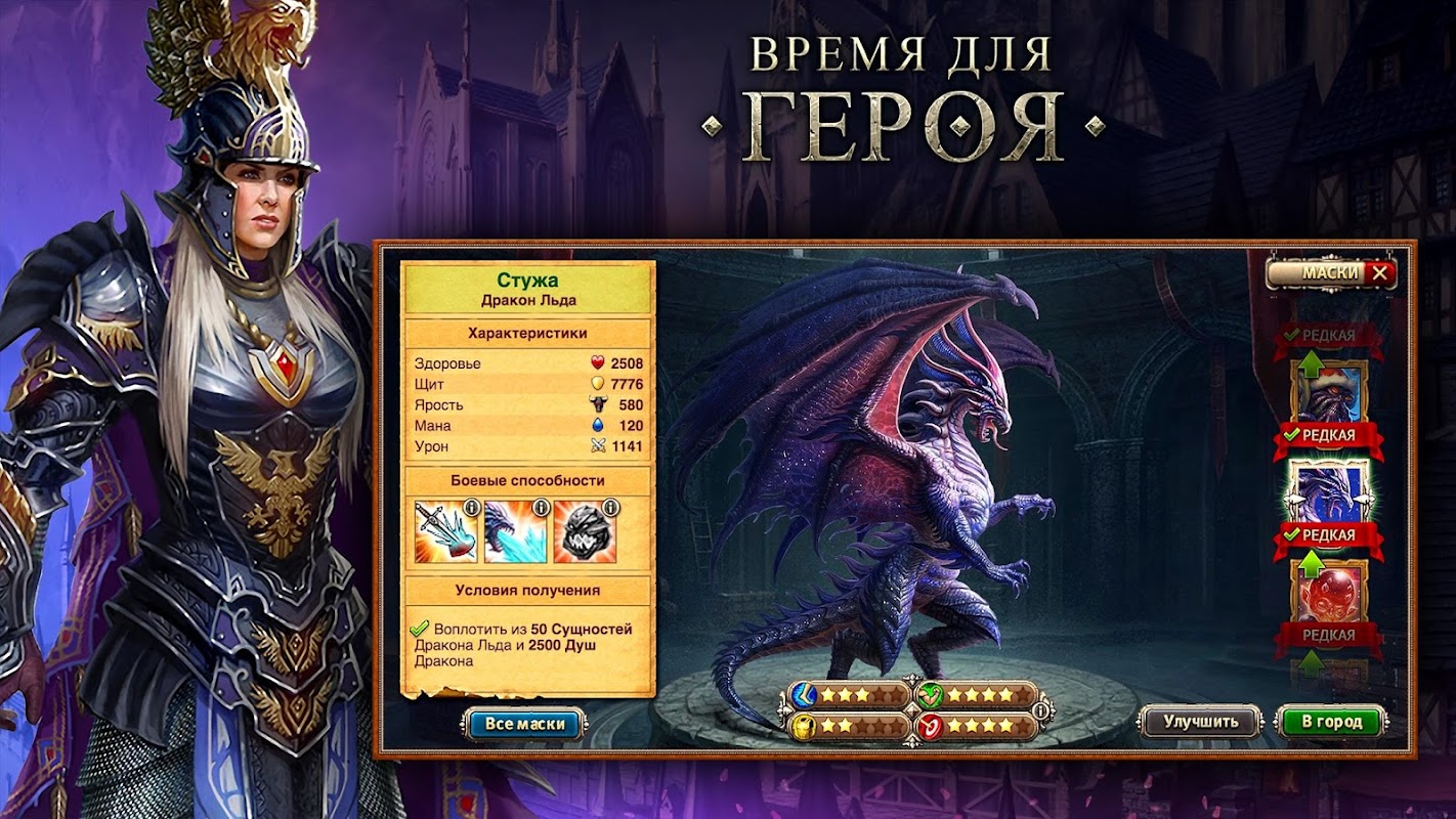 Получи одну из четырех легендарных масок «Дракон» и стань самым могущественным героем всех миров Ожерелья. Повергай других героев на Арене Чемпионов и Гранд-Арене!