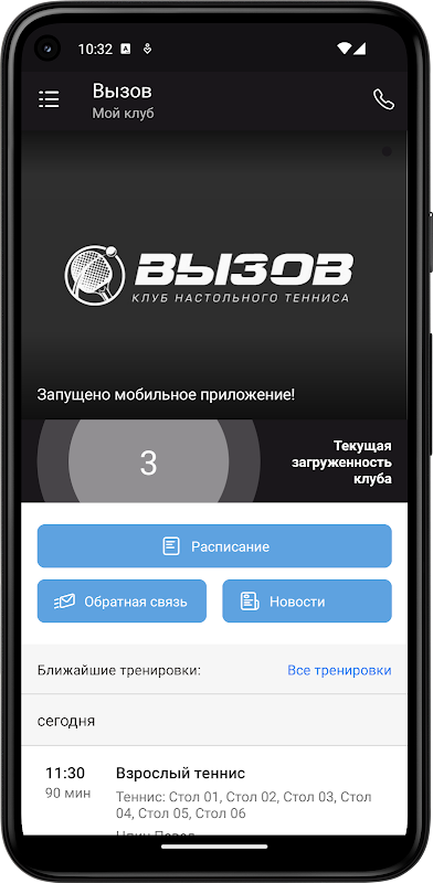 Application pour les clients des clubs de tennis de table