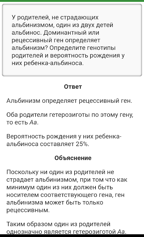 L'application comprend des articles sur la génétique et dix problèmes de solution.