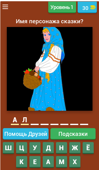Узнаёте персонаж с первого раза? Составляйте его имя, получайте монеты и переходите на следующий уровень.