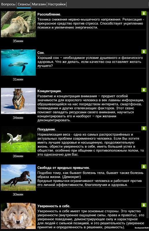 Après avoir installé le programme, vous devez télécharger la musique de fond (50 Mo) et sessions, chacune occupe environ 30 méga-octets. S'il vous plaît assurez-vous qu'il ya suffisamment d'espace libre sur votre appareil et être patient le temps de téléchargement. Utiliser des communications de haute qualité.
