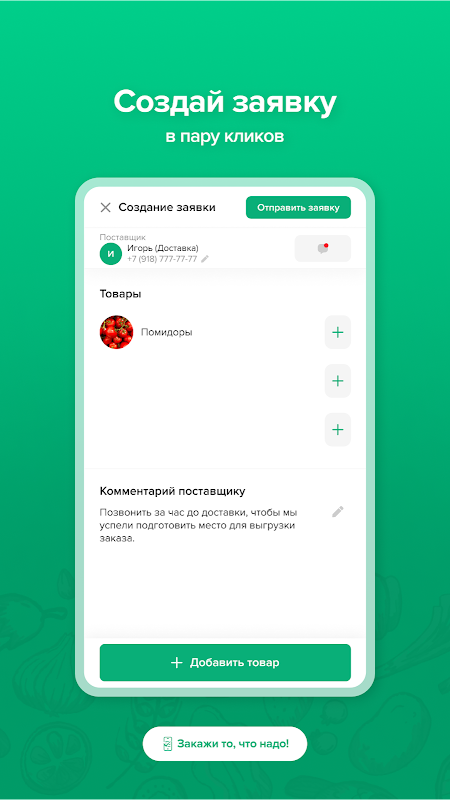 - Création de demandes avec une liste de marchandises pour les fournisseurs - pas d'appels téléphoniques ni de messages !