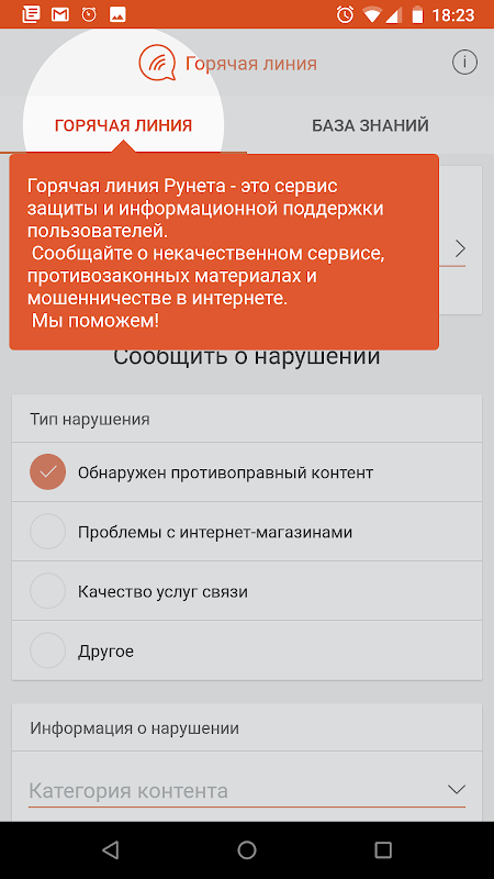 Приложение “Горячая линия Рунета” помогает пользователям лучше разобраться в интернете и обратиться за помощью в несколько шагов, если с вами случилась неприятность в интернете.