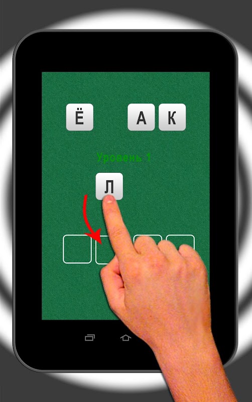 Сверху экрана падают расположенные в беспорядке буквы. Вы должны успеть составить из них слово, перетаскивая их пальцем в нужное место, в нужной последовательности.