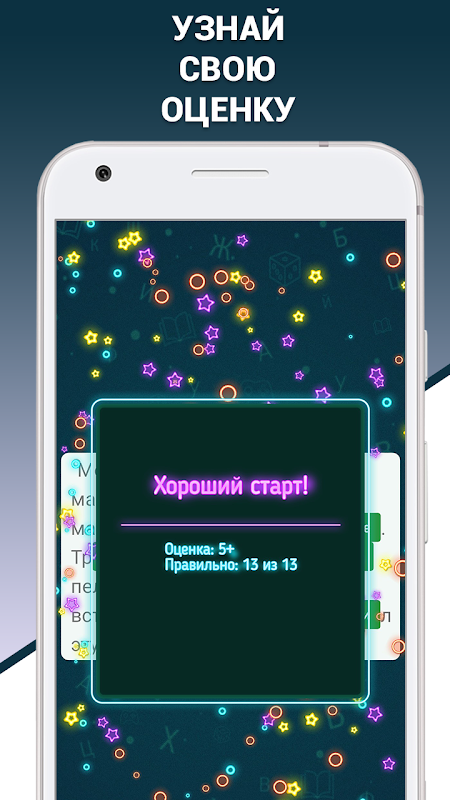 Pour les élèves de première année dans la dictée éducative, il y a un fond d'écran en direct intégré et un widget avec des questions d'un quiz pour les enfants: