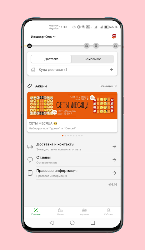 Notre histoire a commencé en 2021, lorsque nous avons décidé de commencer à préparer des rouleaux et à les livrer. Au fil du temps, nous avons pu conquérir le cœur des habitants de Yoshkar-Ola grâce à nos produits de haute qualité. Nous sommes maintenant heureux de vous présenter notre réseau de livraison qui dessert de nombreux clients.