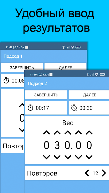 Dans notre application, il n'y a rien de superflu, seules les approches de poids et chronomètre. Rien ne vous distraire de l'entreprise importante.