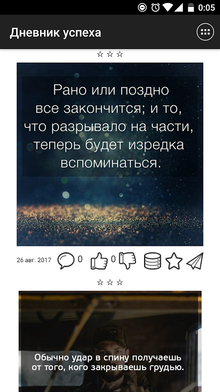 Понравившиеся записи можно комментировать и оценивать. Все понравившиеся картинки можно сохранять в галерее устройства в папке приложения. Ты можешь делиться записями с друзьями через социальные сети, а так же другие установленные на устройстве приложения. Ну и конечно, ты можешь оставлять лайки и сохранять записи в избранное.
