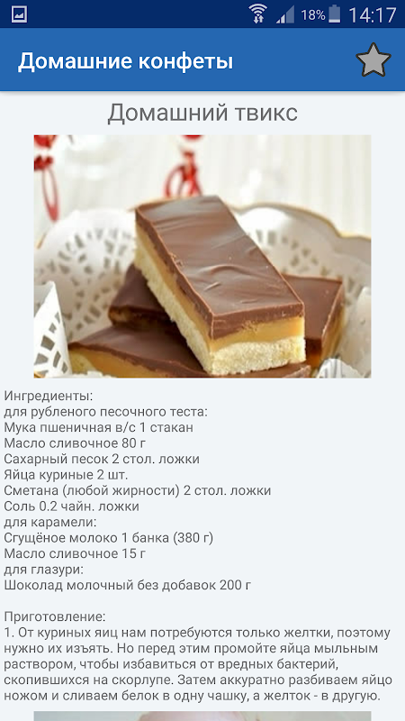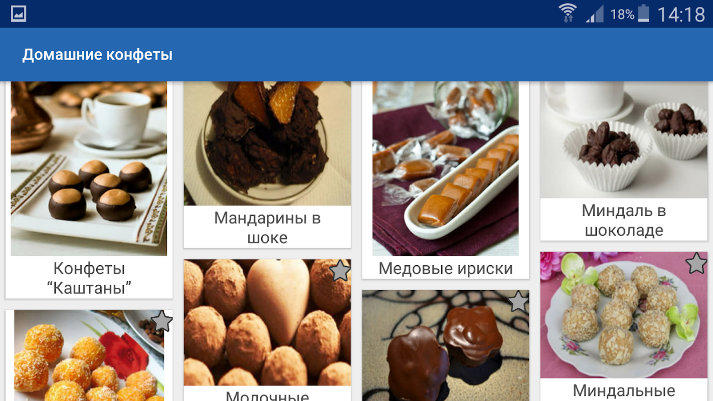 Много пошаговых рецептов с фотографиями вкусных конфет в одной программе