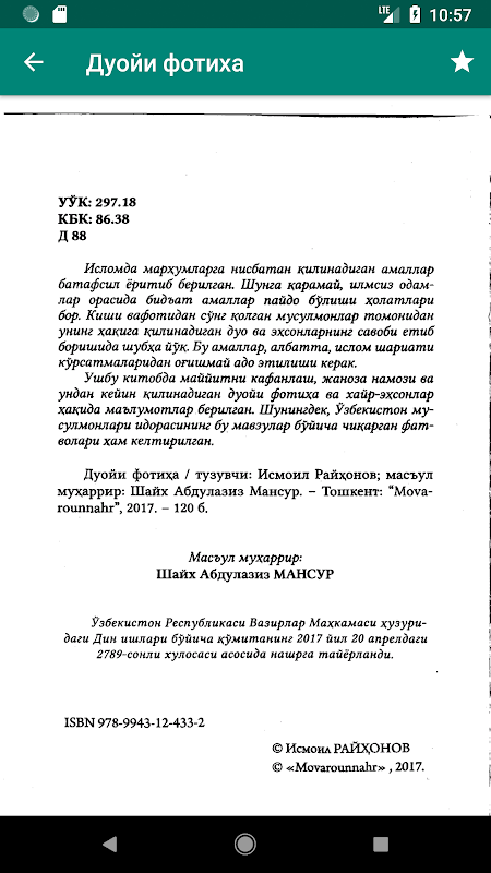 Дуойи фотиха / тузувчи: Исмоил Райхонов; масъул мухаррир: Шайх Абдулазиз Мансур. - Тошкент: “Мо٧а-