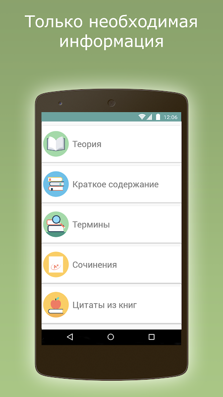 Структурированная теория по литературе, краткое содержание произведений, готовые сочинения, термины для ЕГЭ по литературе, цитаты из книг - это и многое другое в нашем приложении!