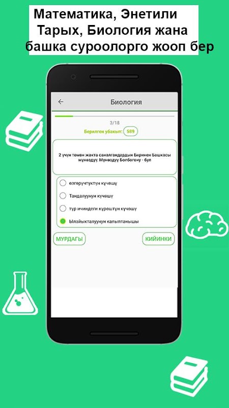 Приложение использует книги и тесты взятые с сайта testing.kg все материалы принадлежат правобладателям, и используются только в ознакомительных целях