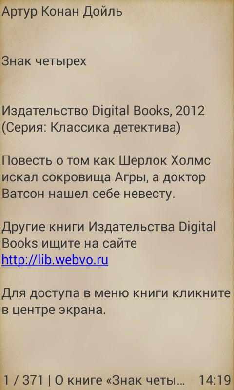 La maison d'édition Digital Books est engagée dans la vulgarisation des œuvres de la littérature classique et le soutien des auteurs débutants. Nous publions des livres sous la forme d'applications pour appareils mobiles basées sur le système d'exploitation Android. À l’aide d’un menu simple, chaque lecteur peut personnaliser l’affichage du livre en fonction des caractéristiques de son appareil.