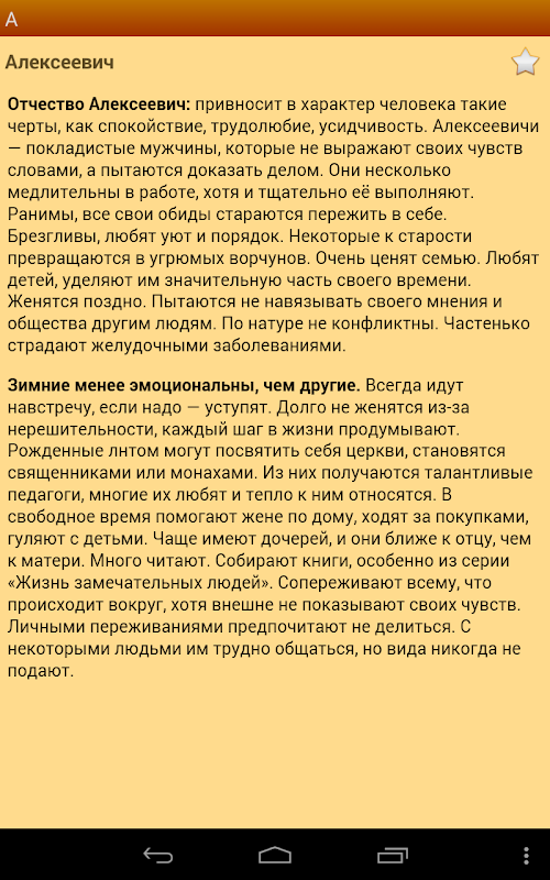 Dans cet article, l'application "Valeur patronyme" ne nécessite pas internet, toutes les données sont chargées localement, ce qui vous permet de recevoir interprétation patronyme instantanément!