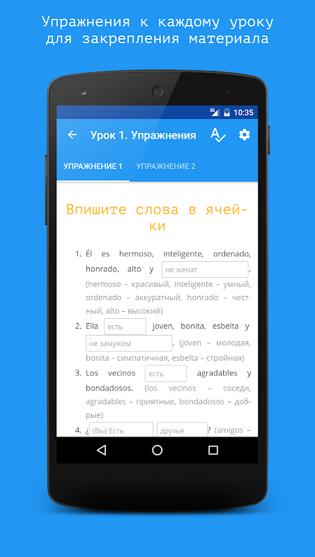 Dans nos exercices, vous devez traduire vous-même la phrase entière. Vous pouvez toujours vérifier les réponses. Vous retrouverez 80% des mots soit dans la théorie de la leçon soit dans les exercices précédents, il est donc totalement inutile de chercher dans le dictionnaire pour chaque mot. Et la mémorisation des mots se produit dans la pratique, lorsque vous construisez indépendamment des phrases et des phrases.