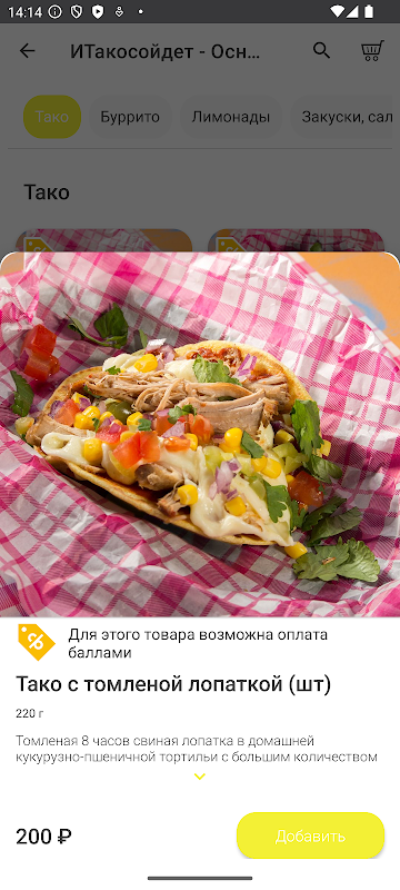 Commander la livraison dans l'application vous offre non seulement un prix plus avantageux que dans les services, mais vous permet également d'accumuler des points pour payer nos délicieux plats.