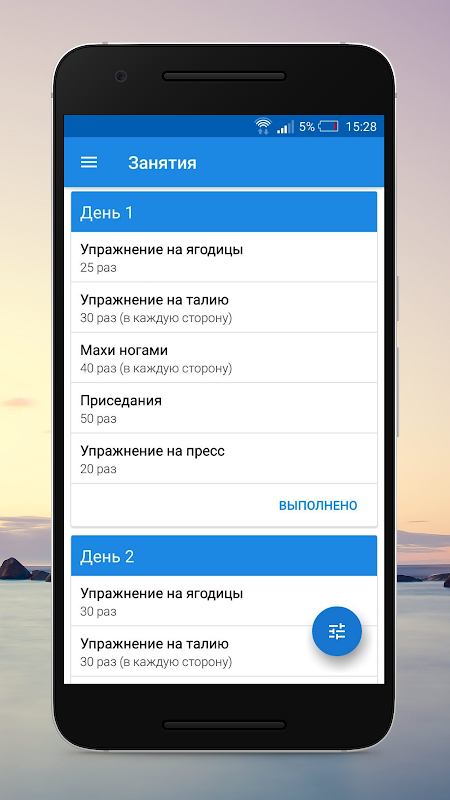 Предлагаем вам курс занятий для похудения рассчитаный на 30 дней. В течении курса, вам придется выполнять пять типов упражнений, которые не требуют специально спортивного инвентаря. Для улучшения результатов тренировок, рекомендуем воспользоваться одной из фитнес диет, которые представлены в нашем приложении.