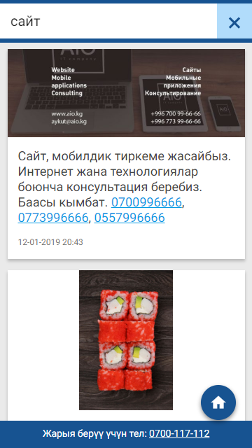Жарыя берүү үчүн, тиркемеде көрсөтүлгөн телефон аркылуу биз менен байланышыңыз.
