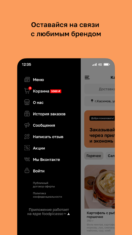 "Kasimovskaya Ladya" est une application de livraison de nourriture dans votre ville !
