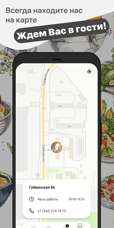Comment passer une commande dans l'application « Restauration d'entreprise » : sélectionnez les articles qui vous plaisent dans le menu, ajoutez-les au panier et accédez à l'écran de commande (en cliquant sur l'icône du panier).
